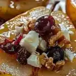 Once the pears are baked, remove them from the oven and sprinkle each half with crumbled feta, chopped nuts, and dried cranberries. Drizzle with honey, and if youโre feeling adventurous, sprinkle a pinch of cinnamon over the top for an aromatic finish.