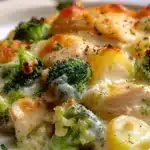 A cozy casserole that combines roasted potatoes, chicken, and broccoli in a creamy, cheesy blend, perfect for easy weeknight dinners.