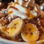 A warm and comforting dessert combining caramelized bananas with a tender, golden cobbler topping, served best with vanilla ice cream.