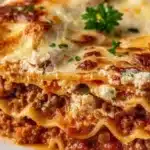 Warm, nostalgic, and utterly comforting — this beef lasagna takes you back to family dinners where the house smelled like garlic and bubbling cheese. Layers of tender pasta, rich ragù, and creamy ricotta fold into a crowd-pleasing casserole that reheats beautifully the next day. If you love classic Italian-American comfort food, this is the lasagna to make when you want something reliably satisfying and soul-soothing, and it pairs wonderfully with other cozy casseroles like a cheesy ground beef potato casserole.