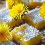 Delightful lemon bars infused with dandelion blossoms, combining a buttery shortbread crust with a tangy, silky custard filling.