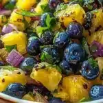 This blueberry pineapple salsa is special because it balances sweet, tart, and spicy elements in a way that feels both unexpected and naturally harmonious. The vibrant color makes it a showstopper for gatherings, yet the quick prep and pantry-friendly seasoning mean it’s perfectly practical for weeknight dinners. Finally, it’s versatile: serve it with chips, spoon it over fish or grilled chicken, or tuck it into tacos to elevate everyday meals.