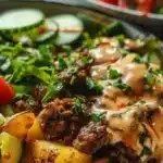 For a lighter, saucier take on the concept, this recipe inspired by healthier mixes offers a delicious alternative: Healthy Burger Bowls with Special Sauce gives ideas for different sauces and brighter vegetables. If youโd like another loaded variation with helpful assembly tips and presentation ideas, see this loaded approach: Loaded Burger Bowls Recipe | Simple Home Edit.