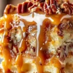This cake balances buttery, nutty, and sweet elements with textural contrasts: a tender crumb from a boxed mix, syrupy praline sauce that sinks into every bite, and a light, tangy cream-cheese topping to temper the sweetness. The chopped pecans add crunch and toasty flavor. It’s a guaranteed crowd-pleaser because it looks impressive but is actually very approachable to prepare.