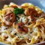 A comforting dish of tender, buttery noodles paired with savory chicken, ready in under 30 minutes.