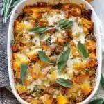 A delightful blend of butternut squash and apples with savory sausage and cheese, perfect for gatherings or cozy dinners.