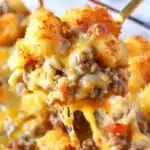 A warm, cheesy casserole with crispy tater tots and savory layers of seasoned beef and creamy mushroom soup, perfect for family dinners or gatherings.