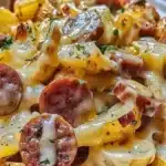 A hearty and comforting dish that combines savory smoked sausage, creamy cheese, and tender baby potatoes, perfect for family dinners or casual gatherings.