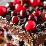 Make the cake batter, bake it in a 9×13 pan, poke holes while it’s hot, then pour cherry syrup so it sinks into those holes. After chilling, top with a whipped cream and chocolate chip mixture and refrigerate again so slices hold cleanly. Below is a detailed walk-through with practical tips to help along the way.