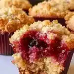 Tender muffins filled with gooey cherry centers and topped with a crumbly streusel, perfect for breakfast or dessert.