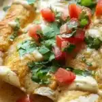 If you’re tired of dry, sauce-starved enchiladas or bland weeknight dinners, this recipe is perfect because it solves both problems — the white sour cream sauce keeps the filling moist and flavorful, and the assembly is straightforward enough to make on busy evenings. You get tender shredded chicken, a creamy, slightly tangy sauce studded with green chiles for brightness, and a crowd-pleasing blanket of melted Monterey Jack. It’s comfort food with personality and very forgiving of substitutions.