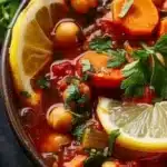 This stew shines for its simplicity: a single pot, mostly pantry staples, and minimal active time. Chickpeas bring plant-based protein and fiber, while the vegetables and spices contribute vitamins, antioxidants, and flavor. It’s a complete, balanced meal when paired with whole grains or a fresh salad.