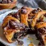 A delightful breakfast or brunch dish combining buttery croissants and sweet chocolate, perfect for busy mornings or special occasions.