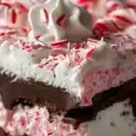 - Assemble and Chill the Lasagna: Sprinkle crushed candy canes over the top and optionally add chocolate shavings. Cover tightly with plastic wrap and chill in the refrigerator for at least 4 hours, preferably overnight.
