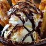 If you’re tired of the same old dessert routine, this recipe is perfect because it solves two problems at once: it transforms the portable pleasure of a churro into a playful, shareable dessert and pairs it with the creaminess of ice cream for irresistible texture contrast. It’s festive enough for company but simple enough for a weeknight treat, and it’s endlessly adaptable to your favorite flavors and sauces.
