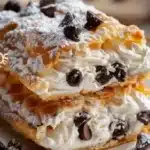 A delightful Italian-inspired dessert featuring sweet ricotta filling and chocolate chips in a sliceable puff pastry format.