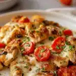 Because it refuses to be boring. The base is creamy and comforting while the bruschetta adds tomatoey brightness and basil party energy. It tastes like you actually planned this meal for culinary points but it takes hardly any fuss to pull off.