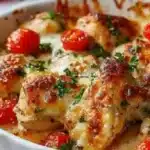 If youโre tired of bland weeknight dinners and want something that tastes like it took longer than it did, this casserole is perfect because it brings fresh Mediterranean flavors to a protein-forward, family-friendly dish thatโs easy to scale. The bright bruschetta topping transforms ordinary baked chicken into something lively, while the creamy base keeps it comforting and satisfying.