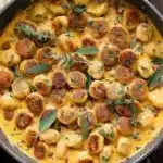 A warm, comforting dish combining soft gnocchi, sweet butternut squash, and savory sausage, perfect for any season.