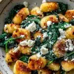 A rich and flavorful dish combining soft gnocchi, fresh spinach, and tangy feta cheese in a creamy sauce.
