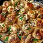 Use fresh mushrooms for the best flavor. Don’t overcrowd the skillet when browning the meatballs for even cooking. Adjust sauce thickness with broth or cream to taste.
