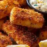 Deliciously crispy baked fish sticks paired with a tangy homemade tartar sauce.