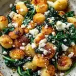 A delightful dish combining crispy gnocchi, tender spinach, and creamy feta cheese for a satisfying meal.