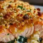 The key to success here is balance and timing. The Parmesan and breadcrumb blend provides savory, nutty crunch, while the lemon juice brightens the salmonโs natural richness. Baking at a relatively high temperature for a short time cooks the fish through without drying it, and the optional quick broil gives a final crisp without prolonged heat. You end up with a dish that looks like a restaurant entrรฉe but relies on straightforward pantry-seasoning and minimal hands-on time.