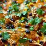This casserole is special because it combines the ease of the crockpot with all the bold, layered flavors of classic enchiladas. The slow cooking lets the chicken soak up enchilada sauce and tomatoes, producing tender shreds that meld with beans, corn, and tortillas for a truly cozy, spoonable bake. Itโs a family-friendly, make-ahead meal that scales easily and reheats beautifully โ perfect for busy weeks, potlucks, or any time you want a crowd-pleaser without a lot of active cooking.