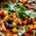 A comforting slow-cooked soup featuring tender chicken, black beans, corn, and vibrant Mexican flavors, perfect for busy weeknights.