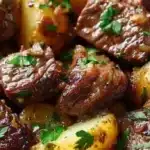 - For company: Plate the beef and potatoes on a warmed platter, garnish with chopped parsley, and offer crusty bread so guests can mop up the garlic-butter sauce.