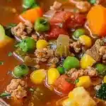 A warm, friendly bowl of soup that’s as comforting as a cozy evening at home — hearty ground turkey, colorful vegetables, and fragrant herbs simmer slowly in the crockpot to produce an easy, nourishing meal. It’s low-fuss, family-friendly, and forgiving, perfect for busy weeknights or a no-stress weekend dinner; if you enjoy simple slow-cooker comfort, try pairing it with other one-pot favorites like this garlic parmesan chicken and potatoes recipe for a varied meal plan.