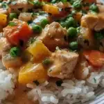 A comforting crustless chicken pot pie with tender chicken, creamy sauce, and vegetables, perfect for weeknight dinners.