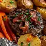 These Easy Beef Burger Foil Packets combine classic burger flavors with roasted potatoes and veggies for a quick and tidy meal. Ideal for grilling or camping.