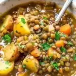 Easy Lentil Potato Soup is a perfect meal for anyone looking to enjoy a warm, comforting dish that’s also healthy. It’s packed with nutrients from lentils, potatoes, and veggies. This soup is not only simple to make, but it also uses inexpensive ingredients, making it a great option for any budget. Plus, itโs vegetarian and can easily be made vegan, catering to various dietary preferences.