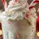 - Garnish and Serve: Add whipped cream, sprinkle crushed candy canes, and decorate with mint sprigs and other festive toppings. Serve immediately with straws.