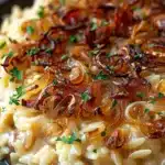 So you are craving something tasty but too lazy to spend forever in the kitchen huh? Same. This French Onion Chicken Orzo Casserole is the perfect compromise between couch life and gourmet vibes. It gives you caramelized onions that sing, gooey cheese that hugs, and orzo that soaks up all the cozy flavors like a tiny edible sponge.