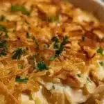 If you’re tired of bland weeknight dinners that don’t feel special, this casserole solves that problem: it’s simple to assemble, packed with flavor, and bakes into a bubbly, cheesy comfort meal that satisfies hungry families and guests alike. The caramelized onions deliver deep, mellow sweetness and umami; the orzo soaks up the luscious sauce; and shredded chicken makes it hearty and protein-packed. It’s also flexible — use leftover rotisserie chicken, swap dairy to lighten it up, or double it for easy meal prep.