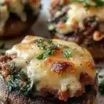 If you’d like a similar stuffed-mushroom concept with a different protein profile, this version offers the same satisfying melty top and savory filling, as inspired by other creative takes like Ground Turkey Stuffed Portobello Mushrooms – Running to the Kitchen. For ideas that combine ground meat and greens in a different format, check this stuffed pasta shell recipe that uses ground beef and spinach for a comforting, family-style main: Stuffed Pasta Shells with Ground Beef and Spinach – Cooking for Keeps.