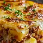This casserole brings back slow Sunday dinners and the warm smell of melted cheese and browned beef filling a kitchen. With thinly sliced potatoes layered around a savory mushroom-cream-beef filling, it’s the kind of homey bake that gathers people around the table. If you enjoy nostalgic, stick-to-your-ribs comfort food, this dish delivers in every cheesy, golden-bubbly bite — and for another cozy bake idea, see best banana bread recipe.