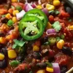 - Fiber: Beans and vegetables make this chili a high-fiber option that supports fullness and steady energy.