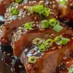 The simplicity of this recipe is part of its charm: a few pantry staples — hoisin, soy, garlic, ginger — combine to create a multilayered glaze that’s salty, sweet, and slightly tangy. Searing builds a savory crust; roasting finishes without drying; and resting ensures each slice is succulent. The hoisin adds depth and a touch of sweetness while soy sauce and garlic provide umami and balance.