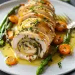 Serve Lemon Thyme Chicken Roulade warm on a plate. Arrange the sliced roulades beside the seasonal vegetables for a colorful presentation. Drizzle some of the pan sauce over the chicken for added flavor. You can pair this dish with a light salad or some rice for a complete meal.