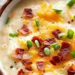 A warm and comforting loaded potato soup that’s creamy, cheesy, and packed with flavor.