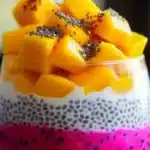 This chia pudding stands out because the combination of mango and dragon fruit delivers both color and contrasting texturesโ€”silky pudding, tender diced mango, and slightly crisp seeds that have plumped. Itโ€™s naturally gluten-free, dairy-free (when made with coconut milk), and adaptable to different sweetness levels, so it suits many dietary needs. Beyond nutrition, itโ€™s visually striking: the hot-pink dragon fruit and golden mango create a layered parfait effect that makes simple ingredients feel special.