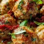 Tender chicken meatballs simmered in a rich, garlicky sun-dried tomato cream sauce, perfect for weeknight dinners and special occasions.