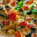 A bright and comforting Mediterranean Vegetable Pasta Bake featuring tender pasta, roasted vegetables, briny olives, and tangy feta, perfect for weeknight dinners or casual entertaining.
