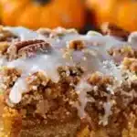 A delightful blend of warm spices and rich pumpkin flavors topped with a crunchy streusel and drizzled with maple glaze, perfect for cozy mornings or afternoon tea.
