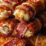 If you’re tired of the same old mozzarella sticks, this recipe is perfect because it adds smoky bacon and Nashville Hot spice for an irresistible crunch and heat that plays beautifully with melted cheese.