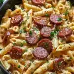 A creamy, savory one-pot pasta dish featuring kielbasa sausage, perfect for busy weeknights.